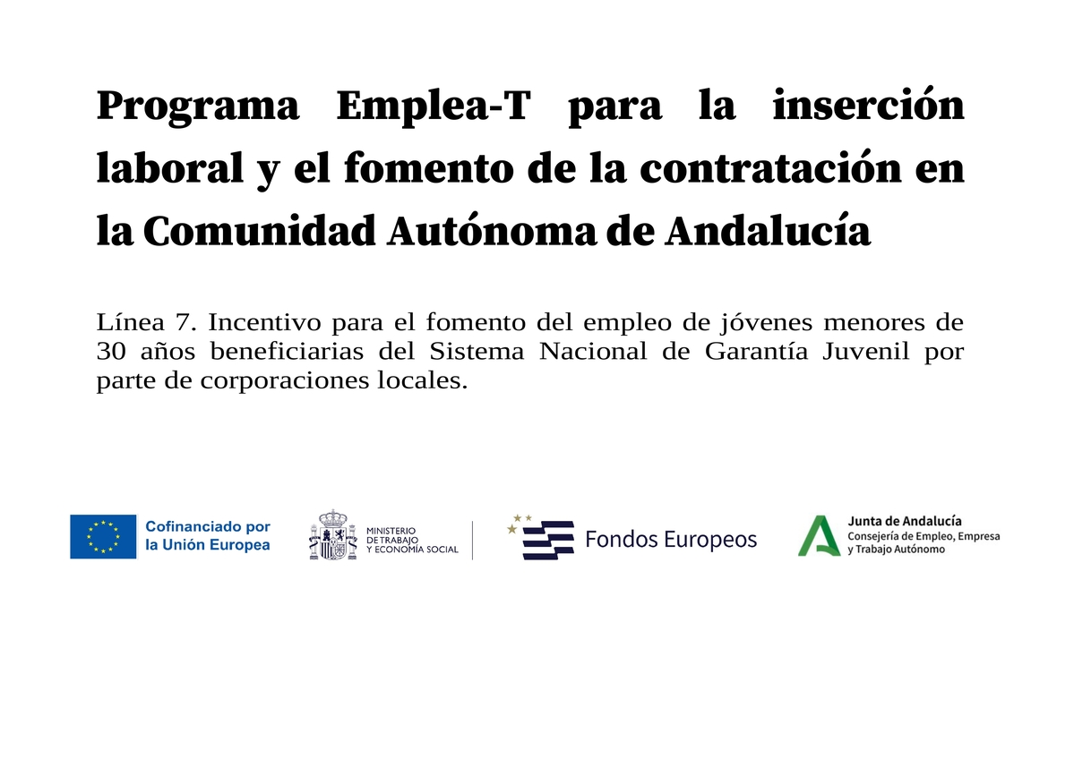 El Ayuntamiento de Baena ha sido beneficiario del programa EmpleaT de la Consejería de Empleo, Empresa y Trabajo Autónomo de la Junta de Andalucía, subvencionado por el Fondo Social Europeo, que destina a la localidad 25.000 euros para contratar a una persona en situación de desempleo.
