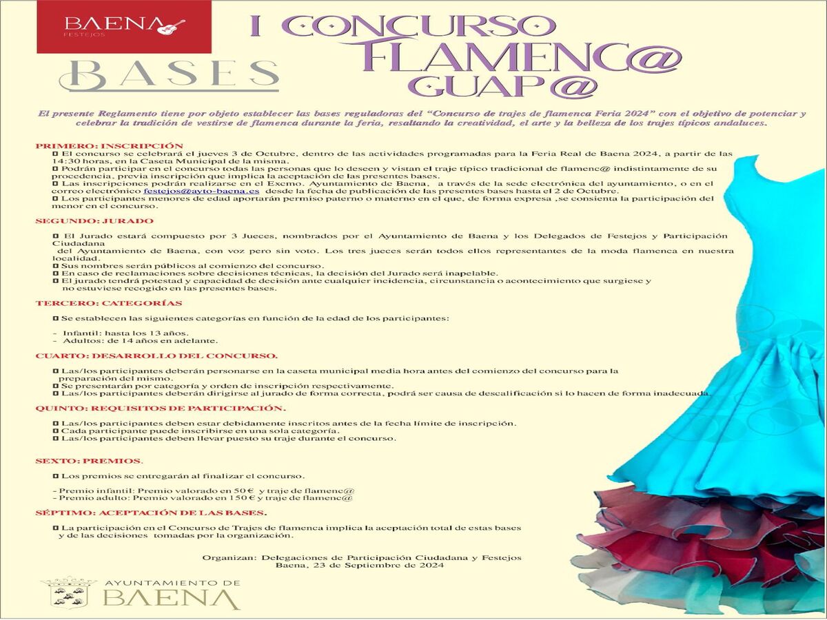 La participación en el Concurso de Trajes de flamenca implica la aceptación total de estas bases y de las decisiones tomadas por la organización.