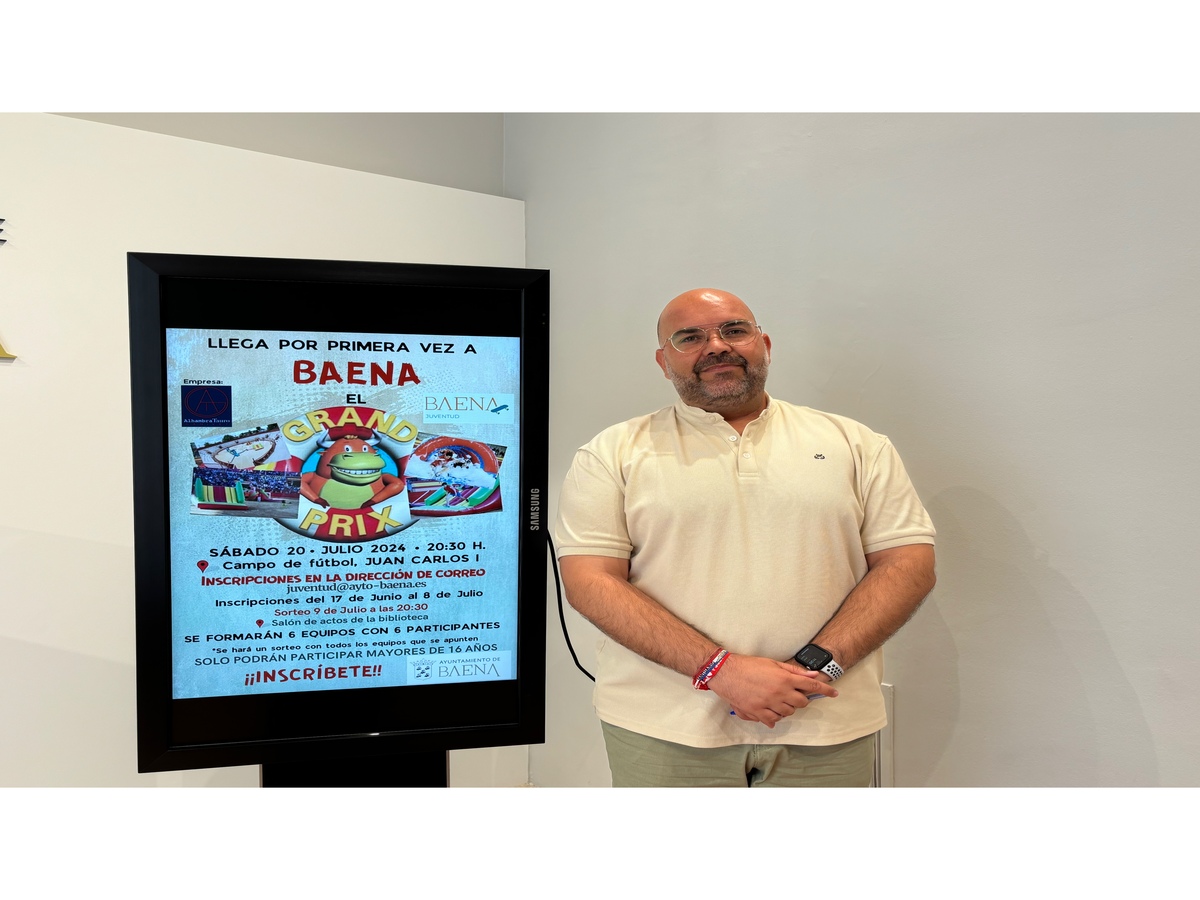 En esta ocasión, el concejal de Juventud, Festejos y Deportes, José Domingo Castro, ha presentado el Grand Prix, “un evento muy especial que tendrá lugar en Baena el próximo mes de julio”. El Grand Prix se celebrará el sábado 20 de julio a las 20:30 horas en el campo de fútbol de las instalaciones deportivas Juan Carlos I. Las inscripciones estarán abiertas desde hasta el día 8 de julio.