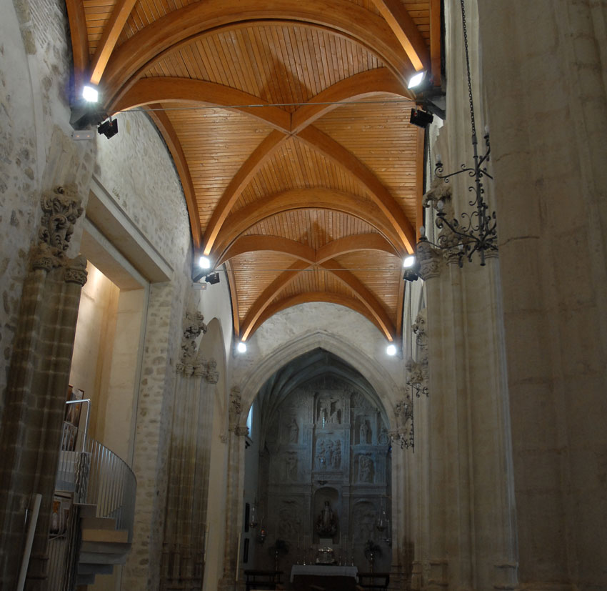 Las primeras noticias de este templo, ubicado en la parte más alta de la ciudad, se remontan al S. XIII. Por su importancia en la villa y por su mención en documentos de la época, se cree que pudo ocupar el emplazamiento de alguna mezquita; de hecho, la torre que aún subsiste parece un minarete musulmán fechable en el siglo IX, aunque con el transcurso del tiempo ha sufrido las lógicas transformaciones, entre las cuales hay que mencionar el propio campanario, que es una obra barroca.