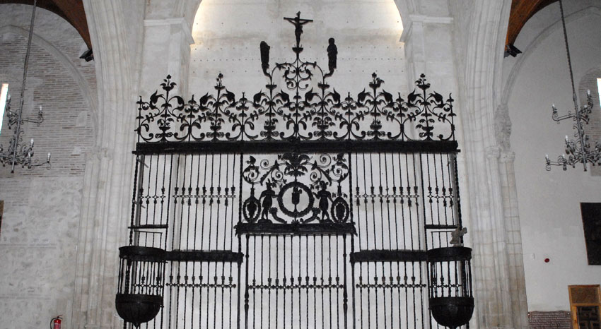 Una de las obras de arte más preciadas y aún conservadas de la iglesia es la gran reja que, antes de la restauración llevada a cabo en el año 2003, cerraba la Capilla Mayor. Tras la misma, la reja se encuentra ubicada a los pies de la nave principal, junto al nuevo arco. Es de estilo plateresco, mediados del S. XVI, que por su crestería, sus frisos repujados y el modo de distribución de sus elementos pertenece a las rejas andaluzas que siguieron los cánones del maestro Bartolomé de Jaén. Es sin duda una de las rejas más importantes de la provincia de Córdoba y está a la altura de las existentes en los templos catedralicios más renombrados.