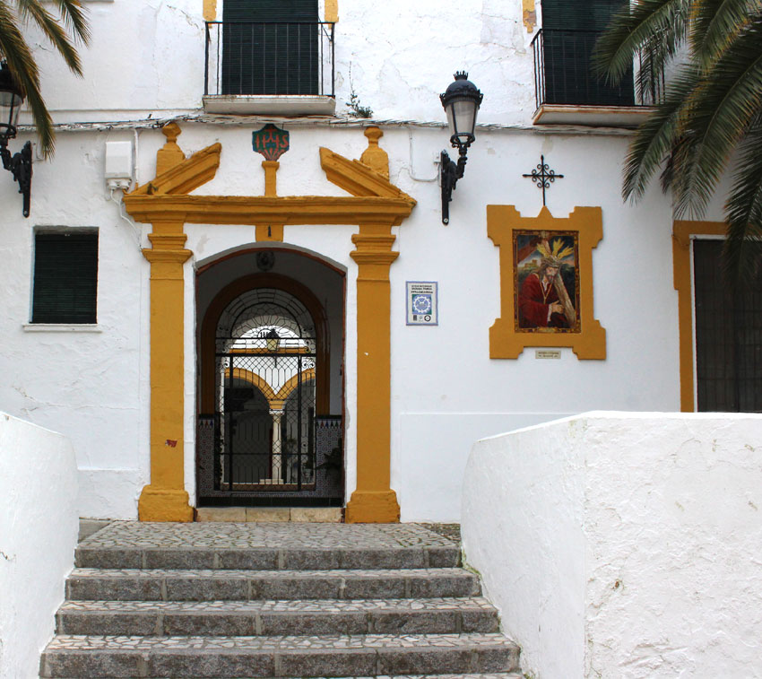 Cuenta con una hermosa puerta enrejada desde la que se puede contemplar un patio claustrado en columnas y capiteles que configuran sencillos arcos de medio punto. El suelo se compone de azulejería enjedrezada y el techo es de travesaños de viguería.