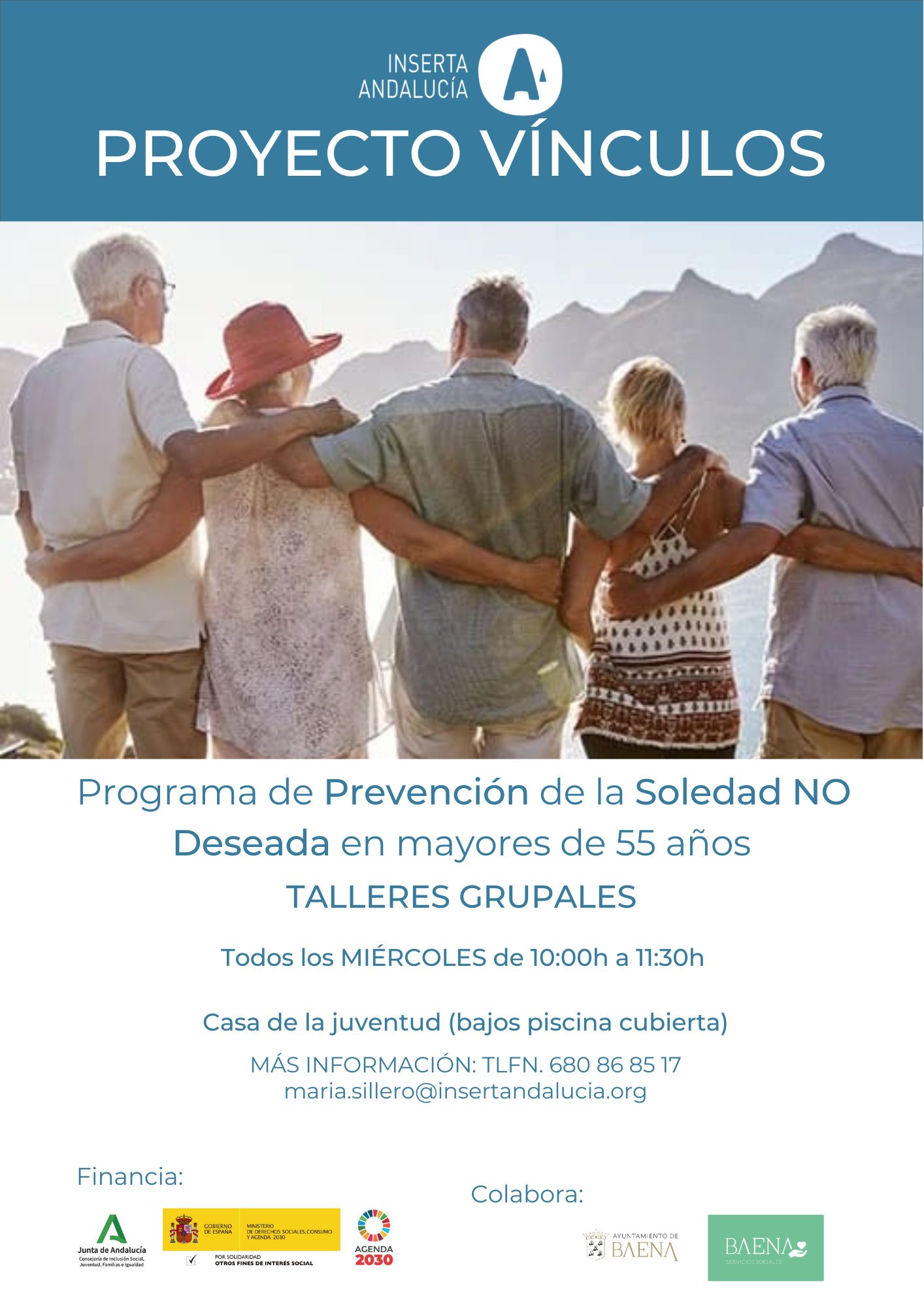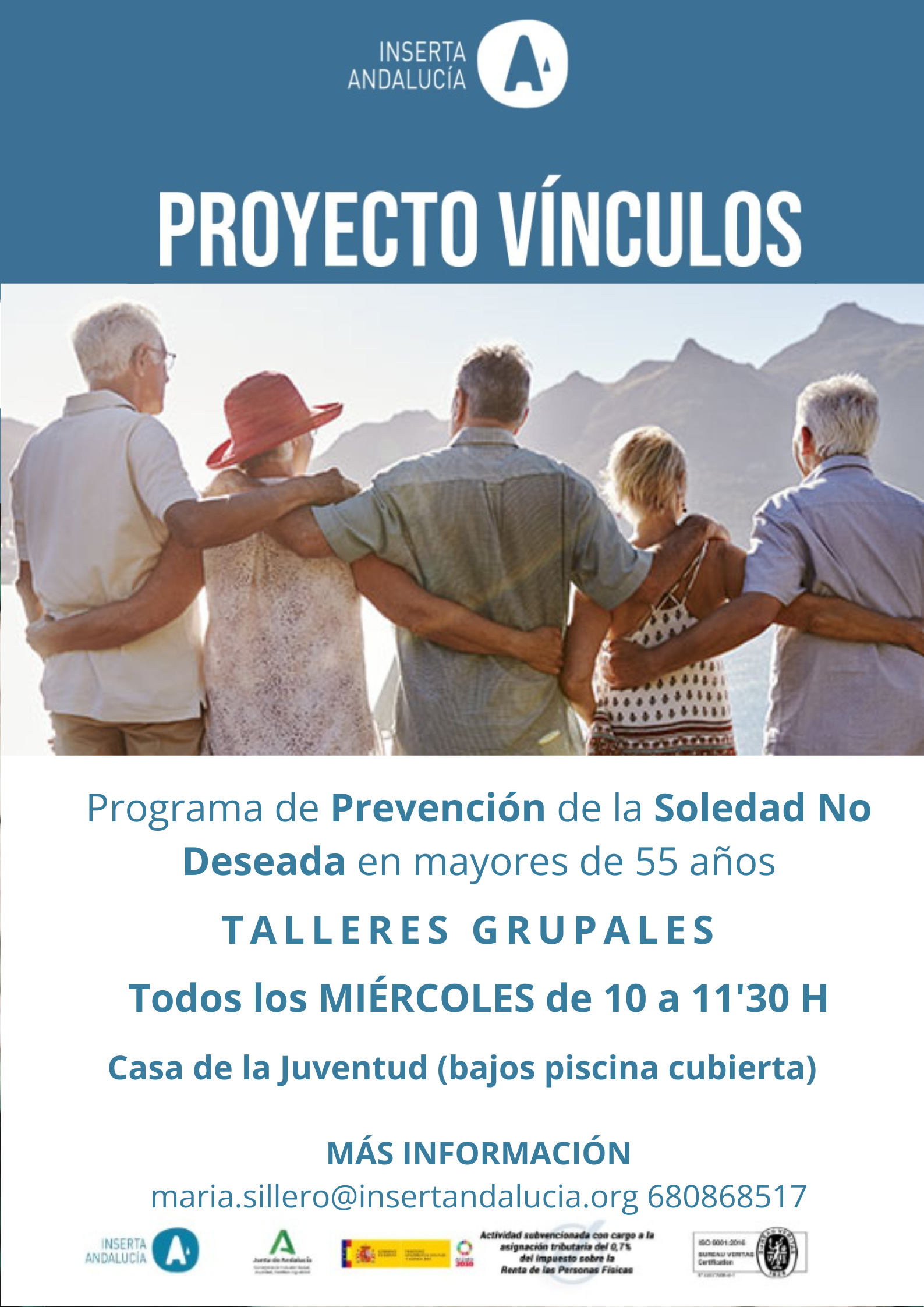 El Proyecto Vínculos es una iniciativa de Inserta Andalucía dirigida a prevenir y combatir la soledad no deseada entre las personas mayores en diversas provincias andaluzas. Esta problemática social, que afecta gravemente al bienestar físico y emocional, se aborda mediante un enfoque integral y personalizado, que incluye tanto intervenciones individuales como grupales. El objetivo principal es mejorar la calidad de vida de los mayores, fortaleciendo su salud emocional y promoviendo su integración social.